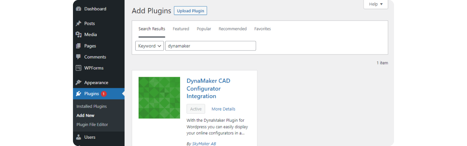 First off you need to install the DynaMaker plugin through Wordpress. You can find it under Plugins/Add New and search it with the keyword dynamaker.