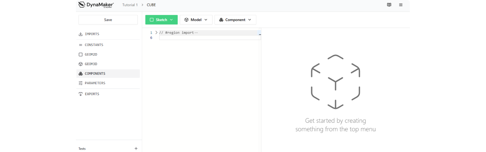 Get started with DynaMaker by creating a simple cube. After you create your account at app.dynamaker.com, you will learn the component editor in three short steps: