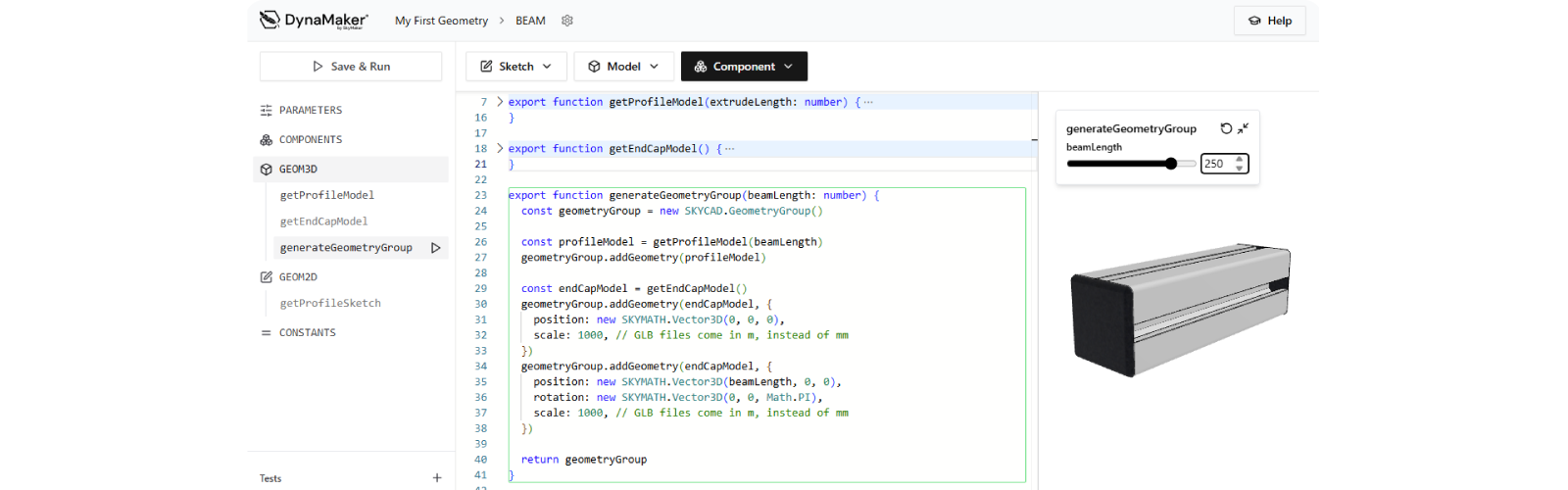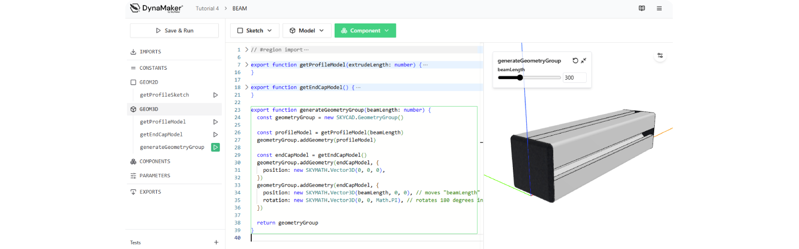 generateGeometryGroupthat returns a geometry group and takesbeamLength: