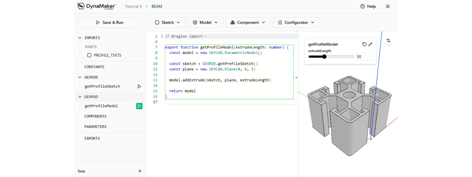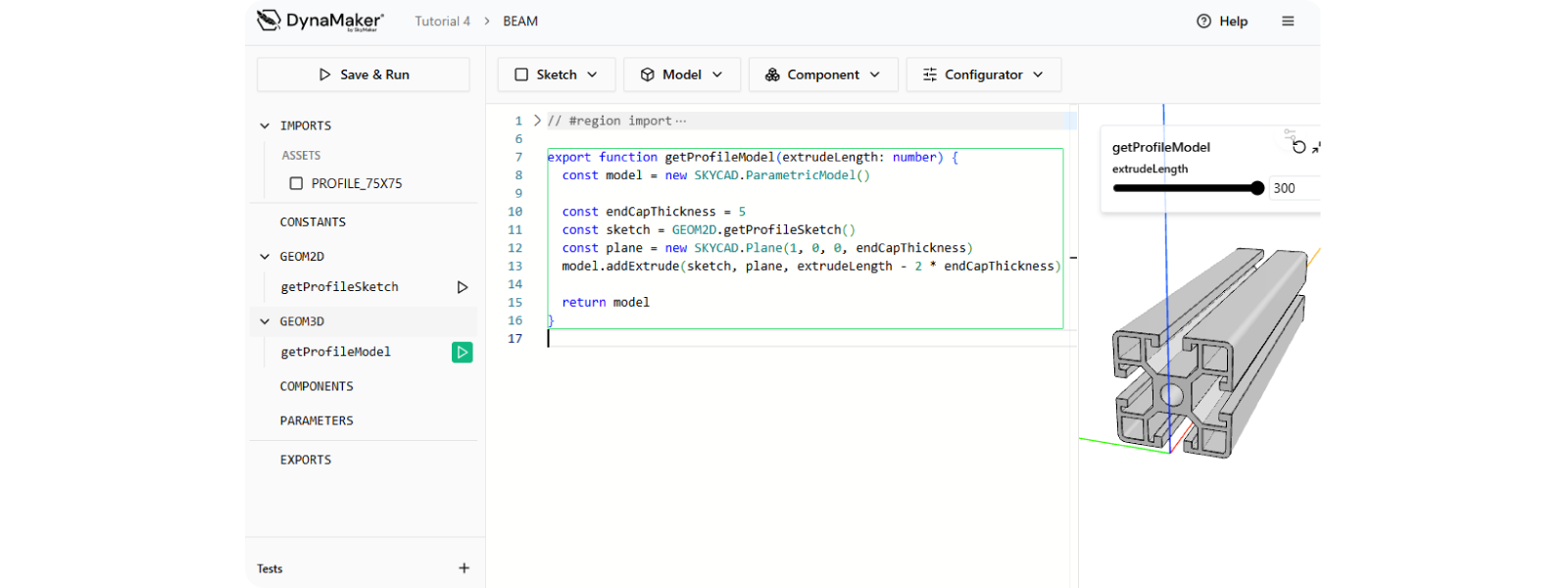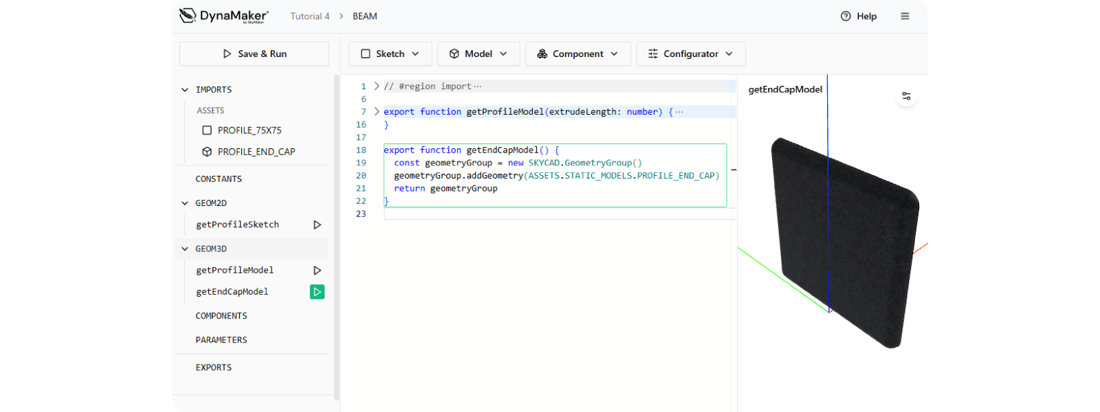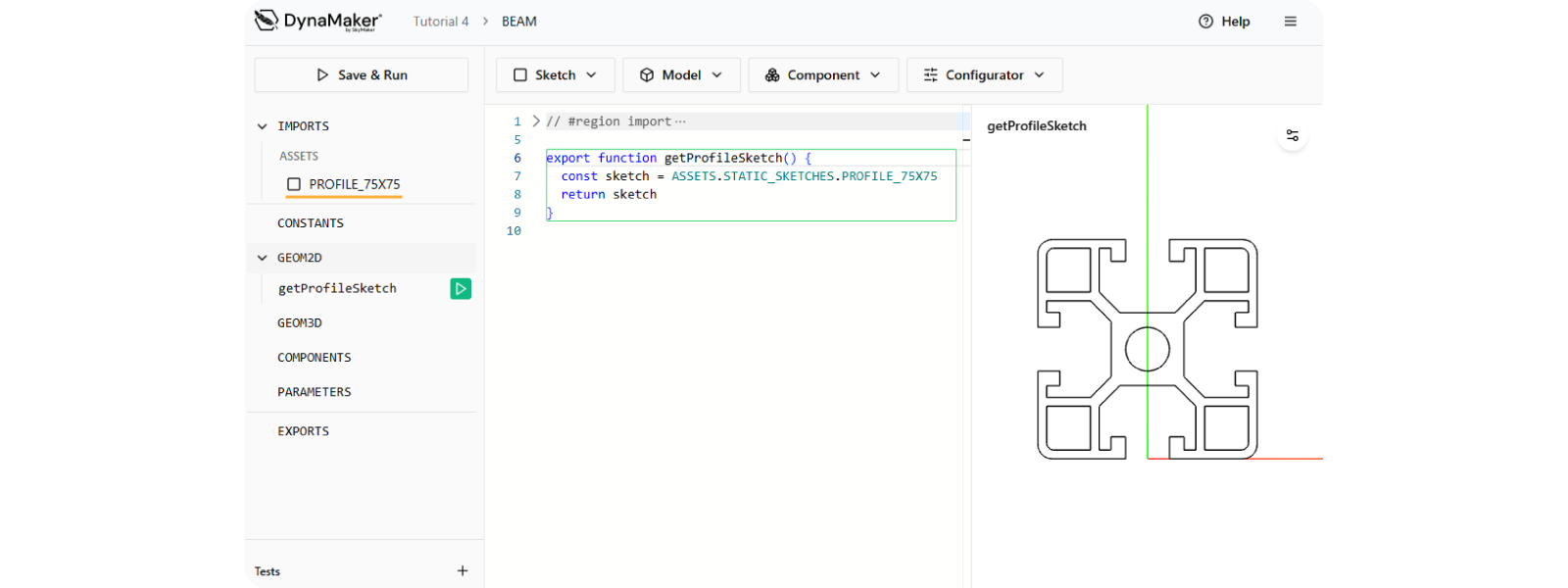 - Rename function to getProfileSketch through the sidebar, so that you have the following: