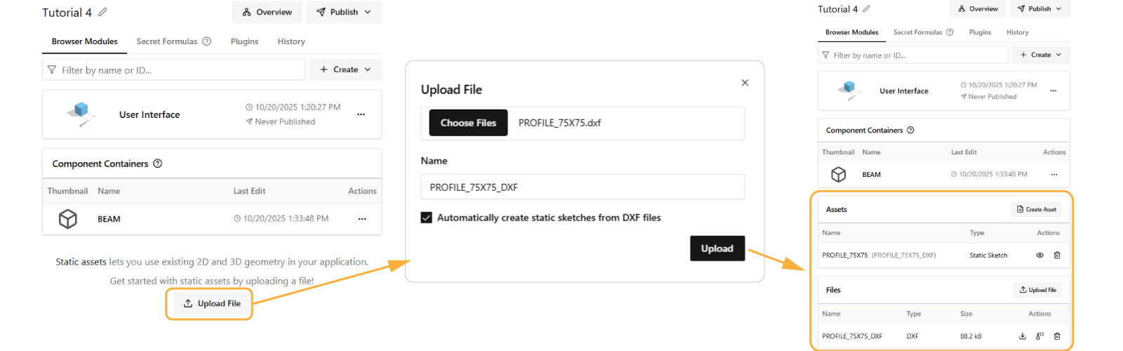 You then see the static sketch together with the DXF file in the dashboard, ready to use.