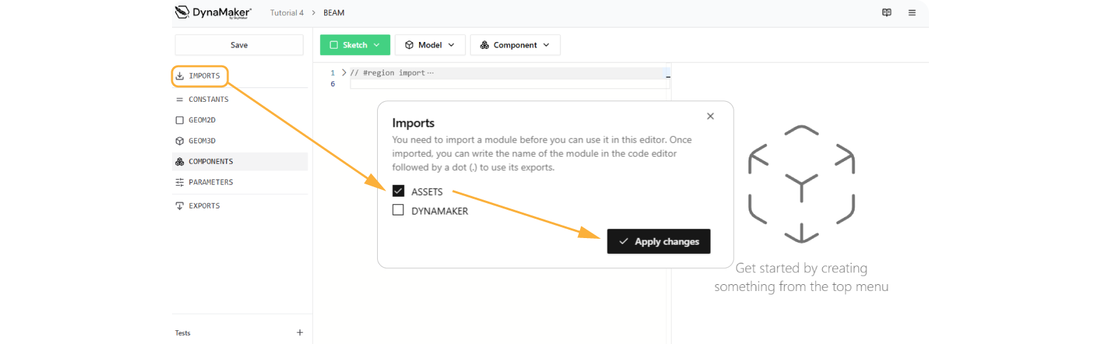 In this tutorial you learn the basics of combining multiple models into one geometry and reusing 2D and 3D assets from other software. You build a metallic beam with a parametric length and fixed end caps.