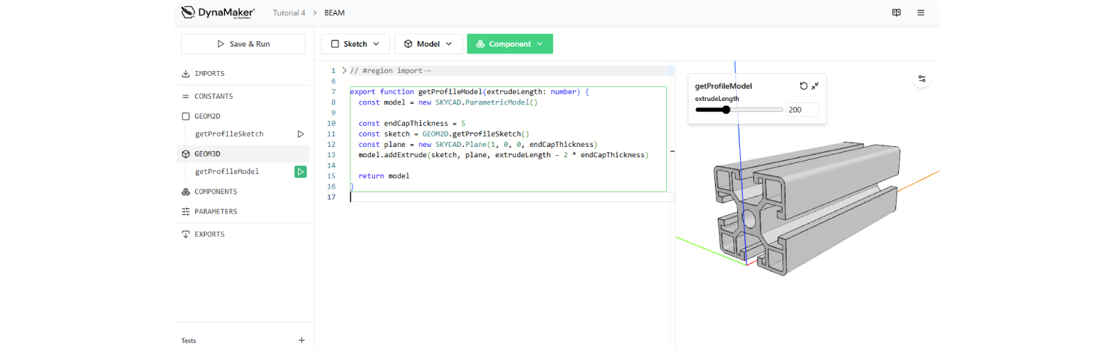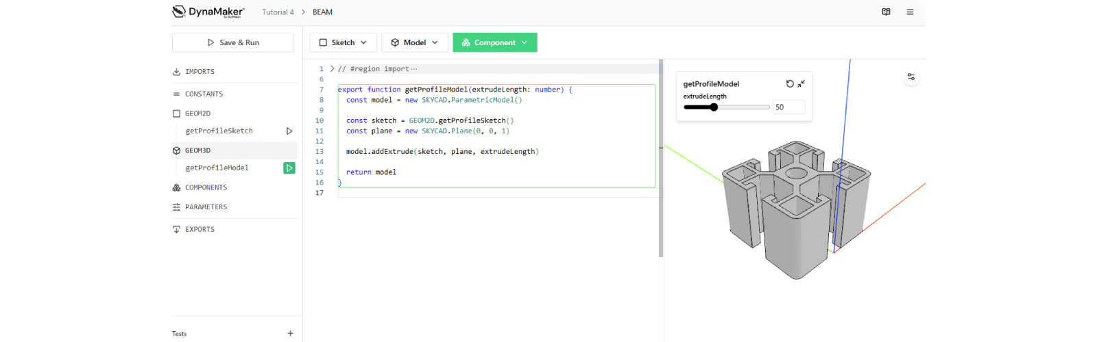 sizefrom the function (onlyextrudeLengthis used). - Click Save & Run with this finished version: