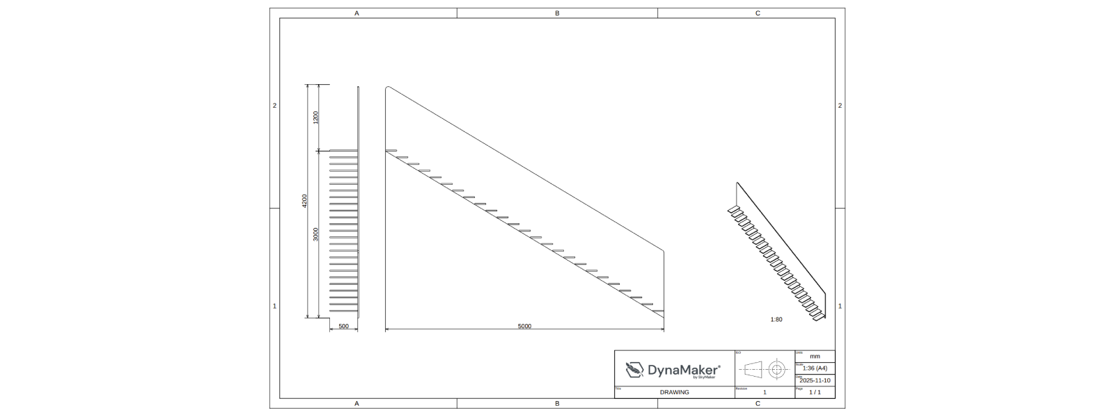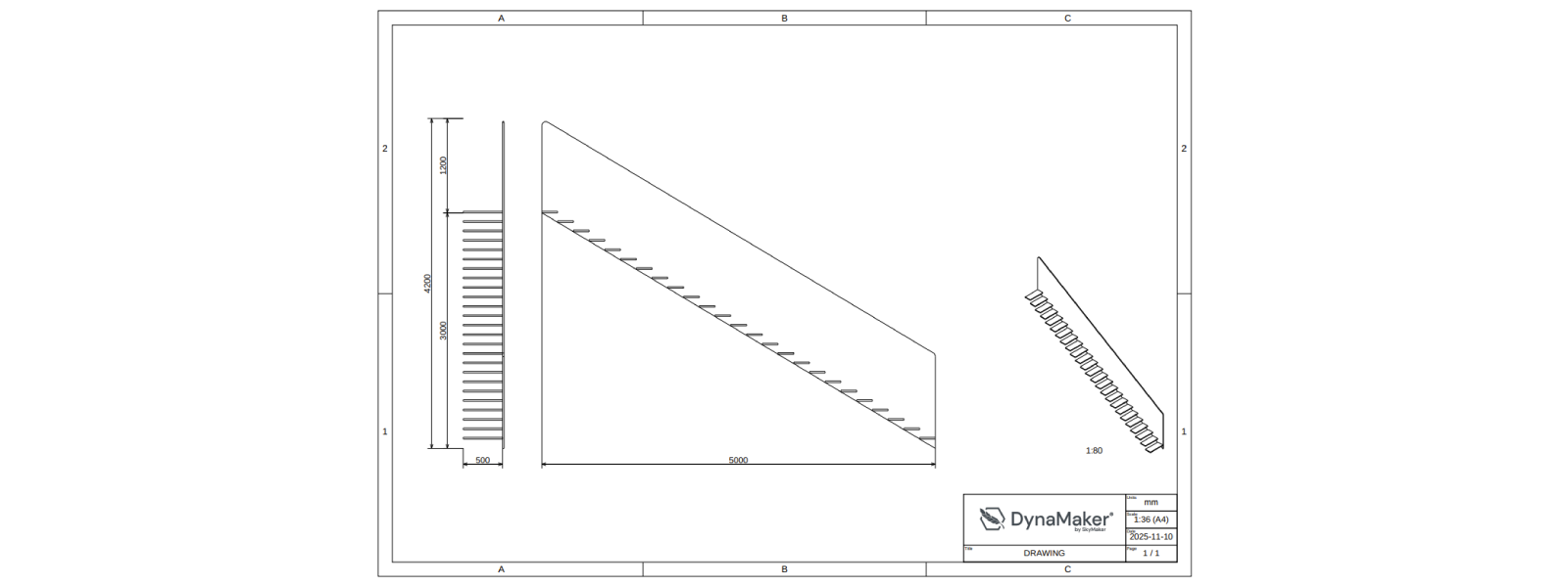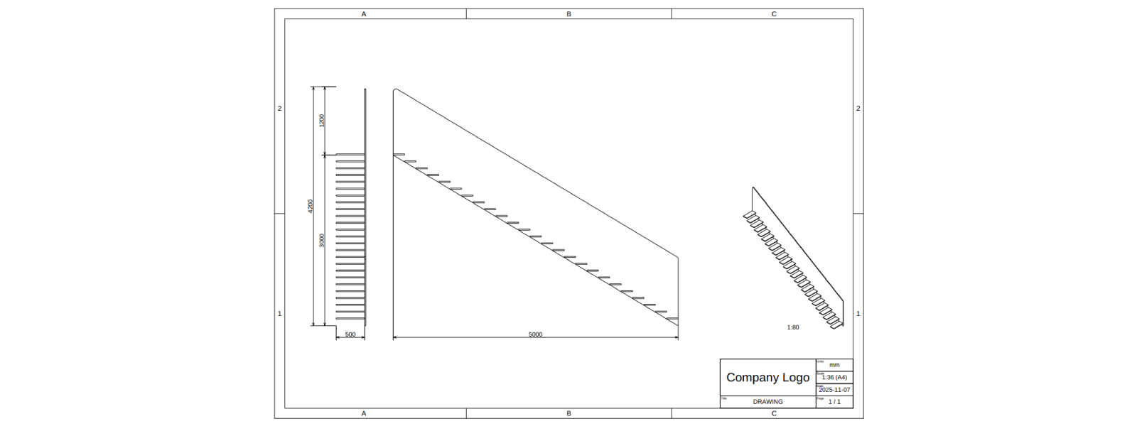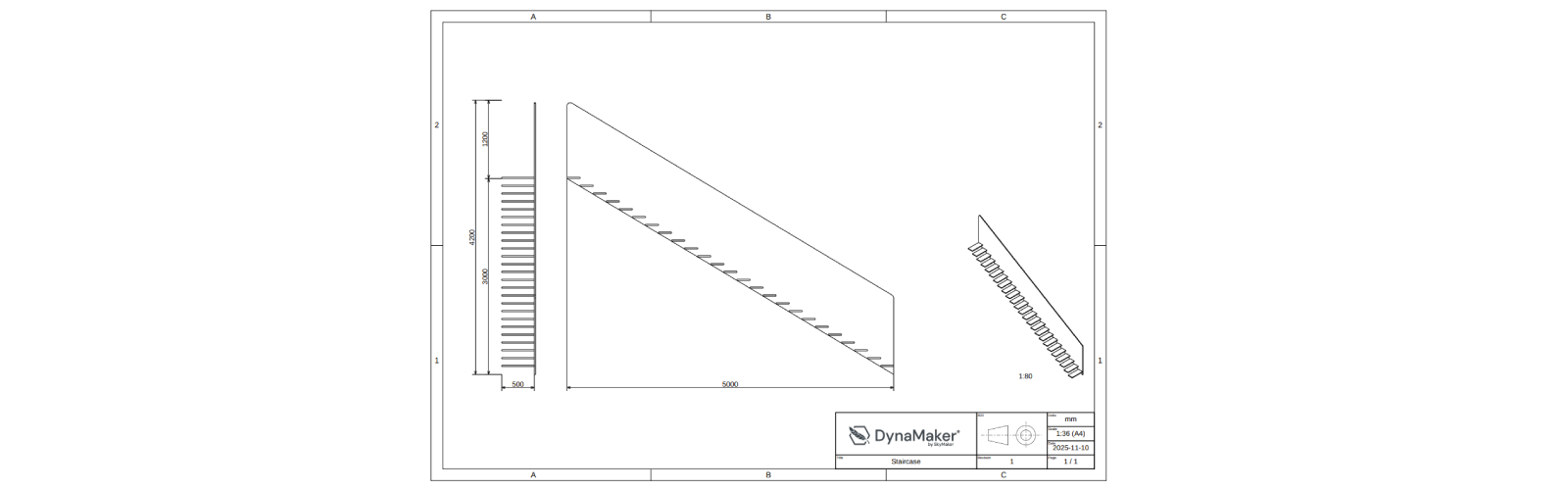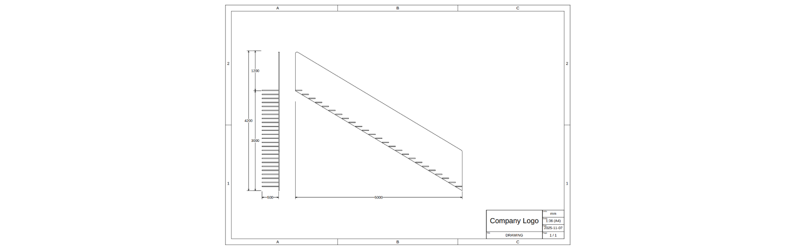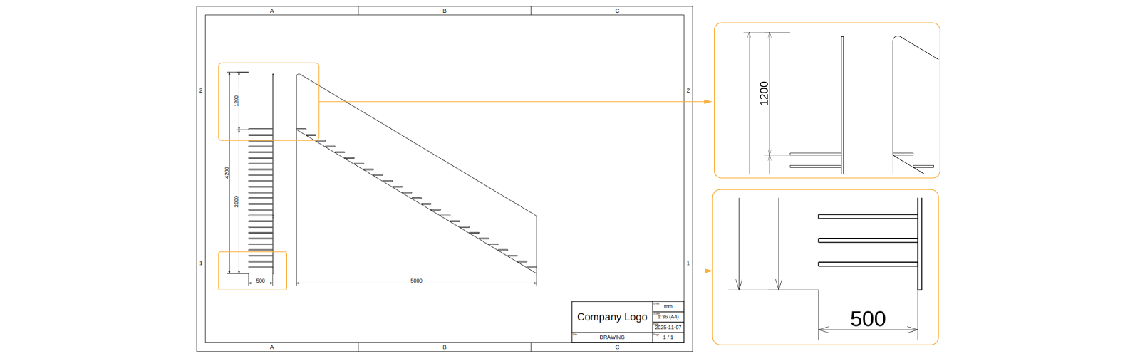 In this tutorial, you will learn how to create and autogenerate 2D drawings. As a product example, we will reuse the staircase from Assemblies and aim for something like the following: