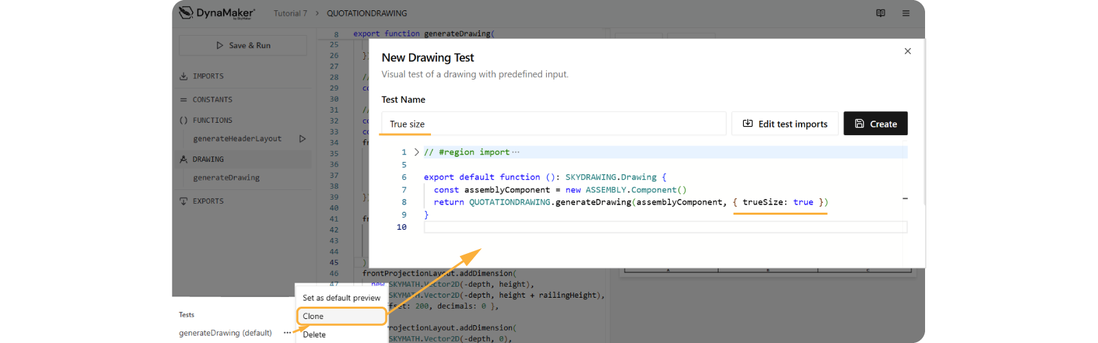 generateDrawing (default), click ••• and then Clone. - name the test e.g. True size.