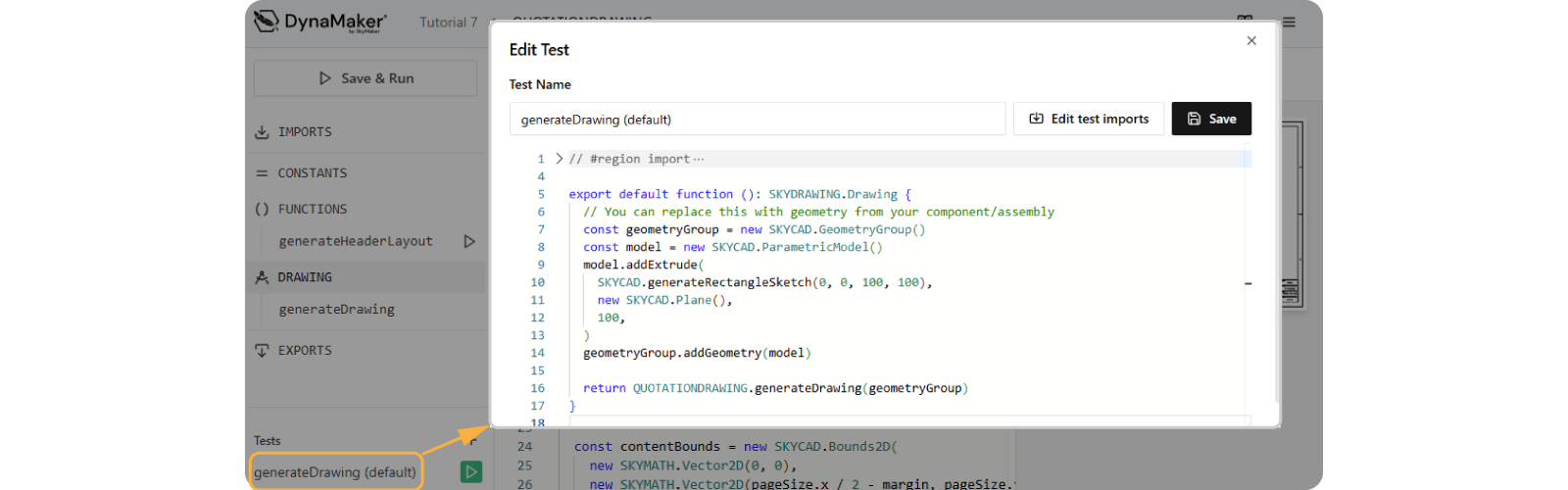 Notice generateDrawing is using a geometry as input if you open the default test at the bottom-left: