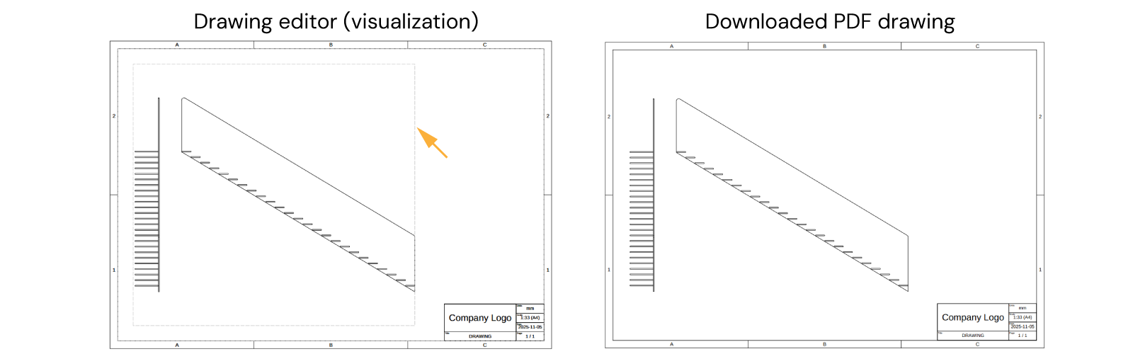 Feel free to download the drawing in DXF format at the top (📥 DXF), open this DXF file with your DXF-viewer software and doublecheck the difference when adding dimensions there.
