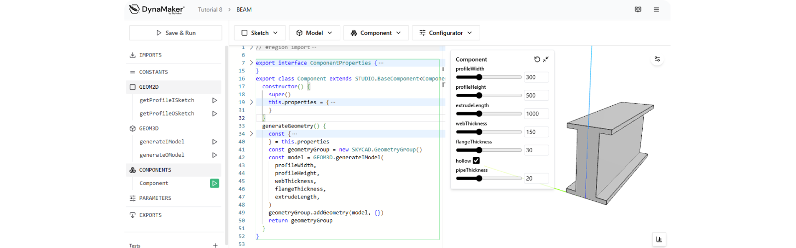 const model = GEOM3D.generateIModel(profileWidth, profileHeight, webThickness, flangeThickness, extrudeLength)