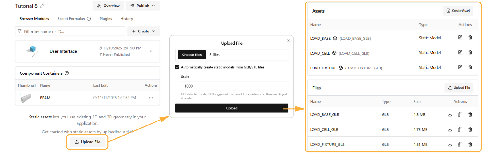 - In the app dashboard, click Upload File and upload both without creating an Image asset.